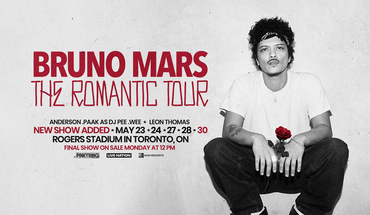 Bruno Mars has announced a mind-blowing fifth show in Toronto and we have your tickets! This historic run of concerts will be talked about for years, and there was no way that we weren’t gonna make you a part of it!